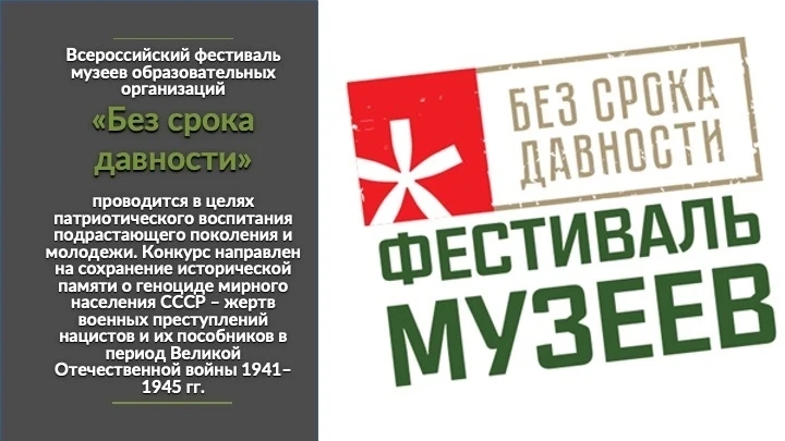 С 16 марта по 17 апреля проводится I этап Всероссийского фестиваля музейных экспозиций «Без срока давности».